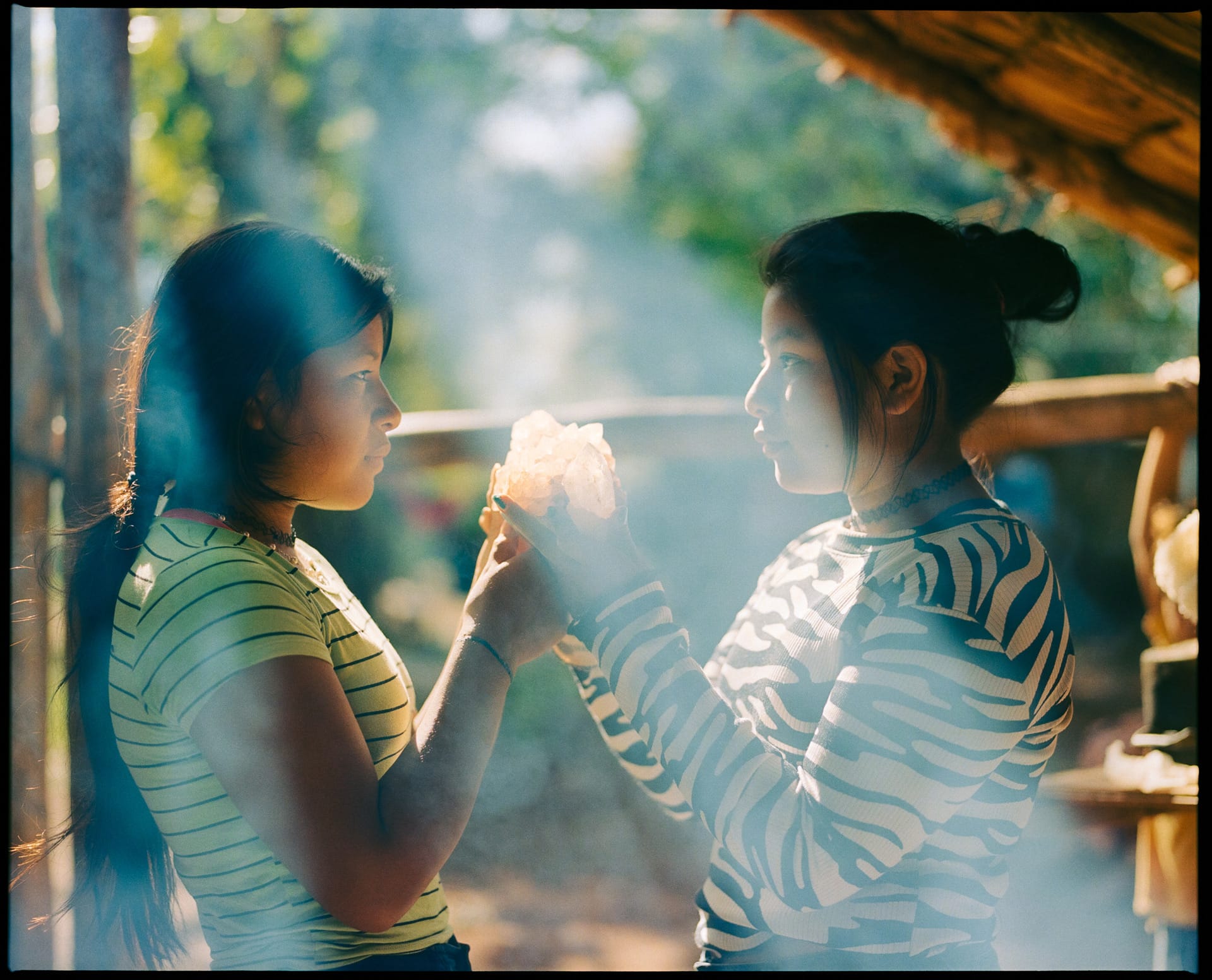 Sisters Analia and Carina Castillo hold a local sacred stone, symbolizing how precious Indigenous knowledge is, transferred across generations.
